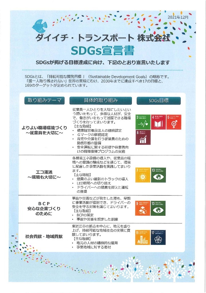 弊社は公益社団法人全日本トラック協会の制定する38項目の厳しい基準をクリアしGマークの認定で、安全性が高くて優良な事業所である認可を受け、活動を行っております。